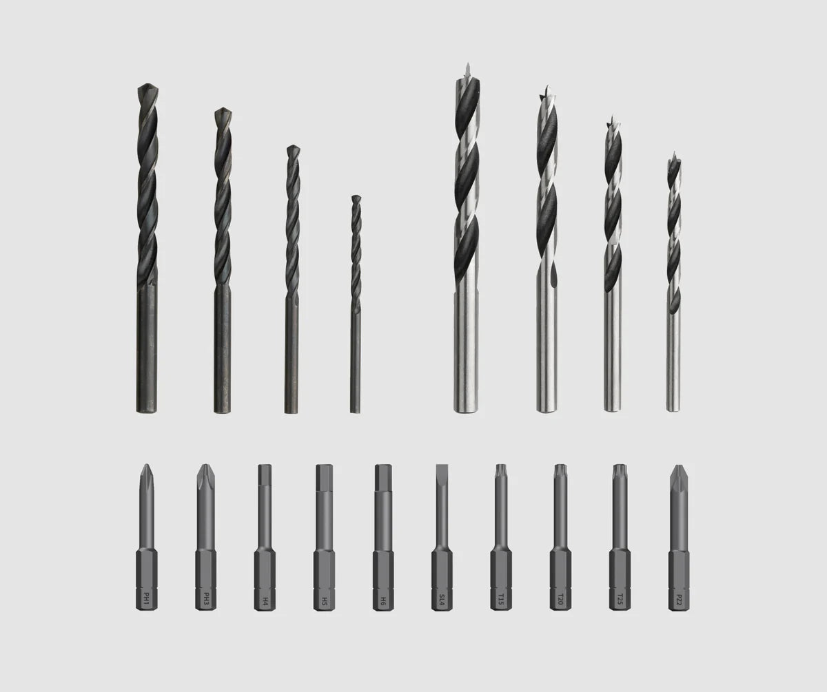 Anti-roll surface and magnetic bit holder for perfect screw installation.
