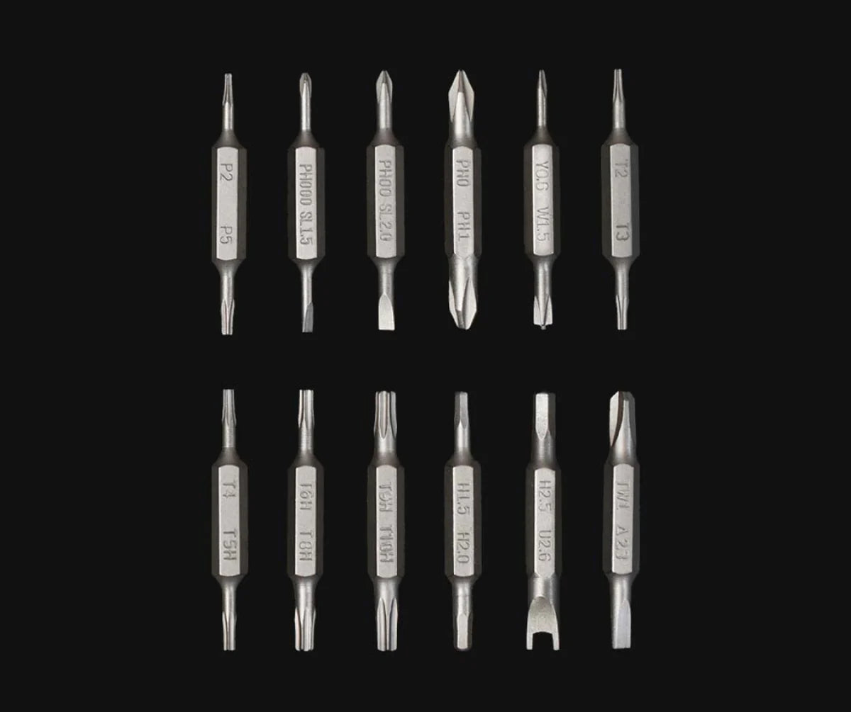 Phillips, Torx, Slotted, Hex, Pozidriv, Square, and Security. Find the most common double-ended precision bits. Flip and change magnetically, for daily repairs.