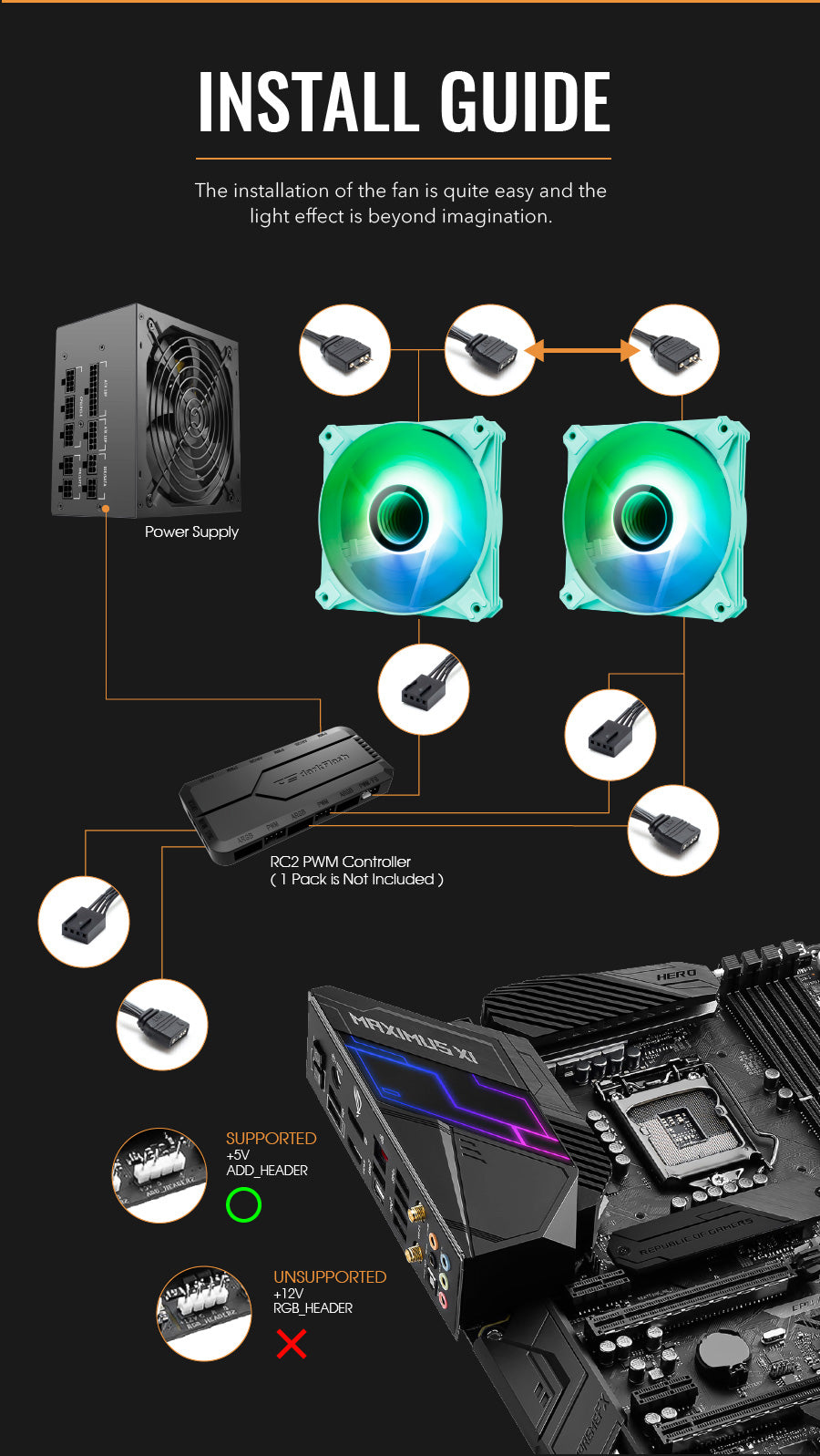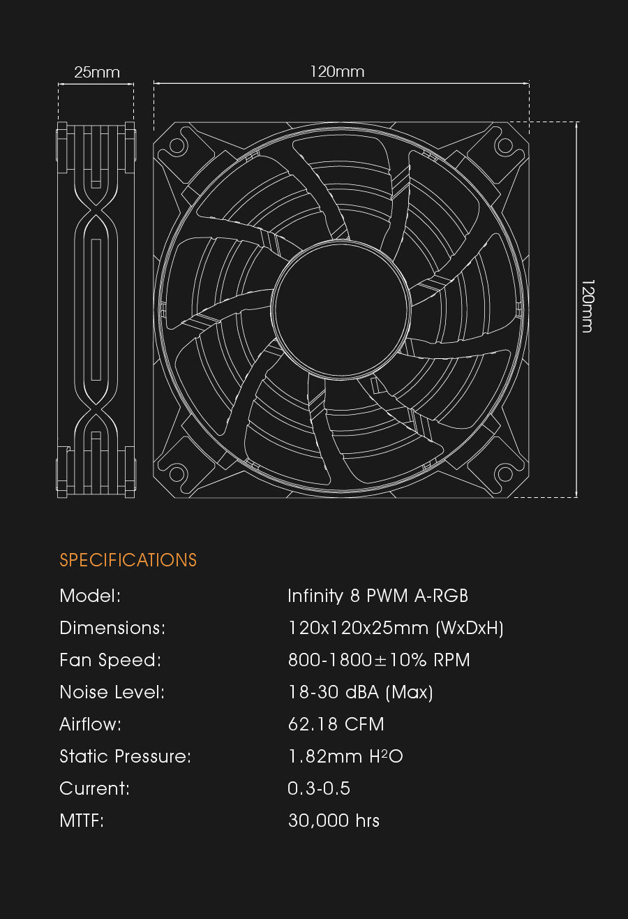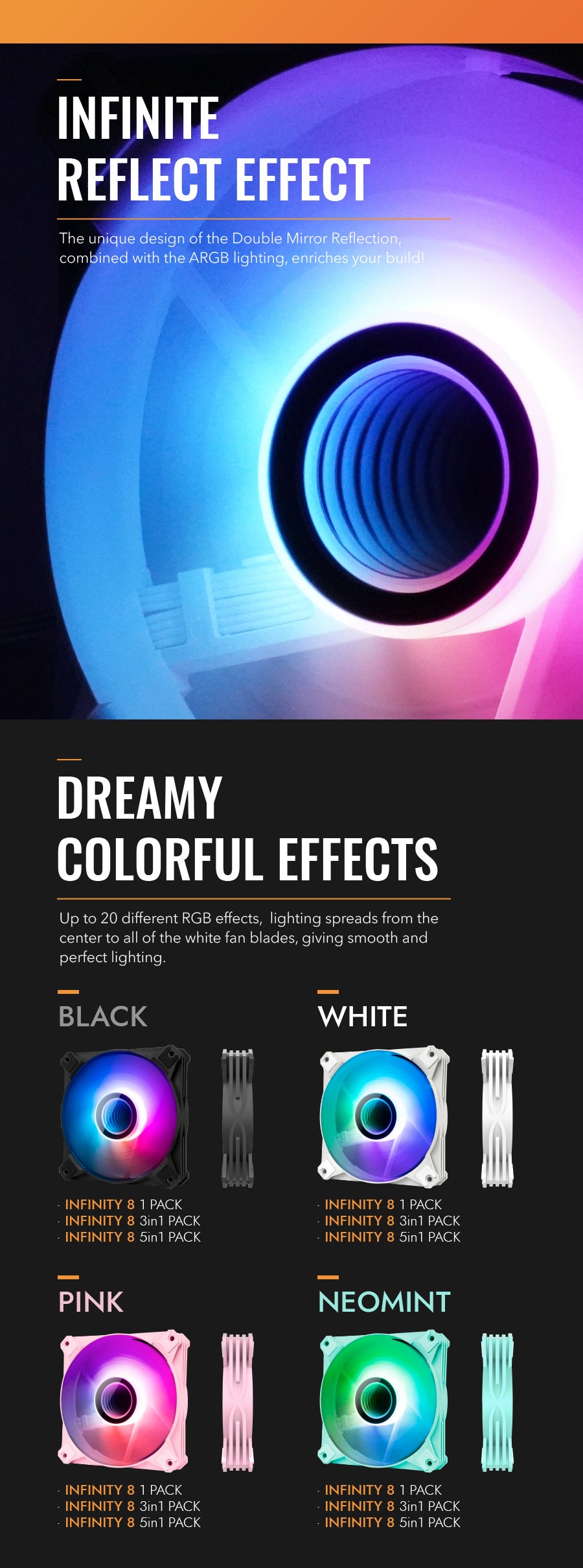 DarkFlash Infinity 8 3-Pack ARGB PWM Computer Case Cooling Fan with Controller 5V 3pin Header