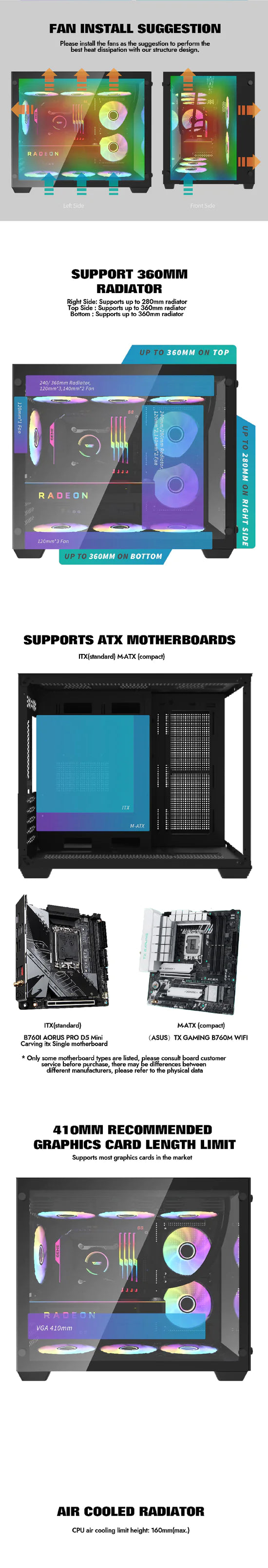 Radiator System:Side:120/240/280mm,Top:120/240/280/360mm,bottom:120/240/360mm