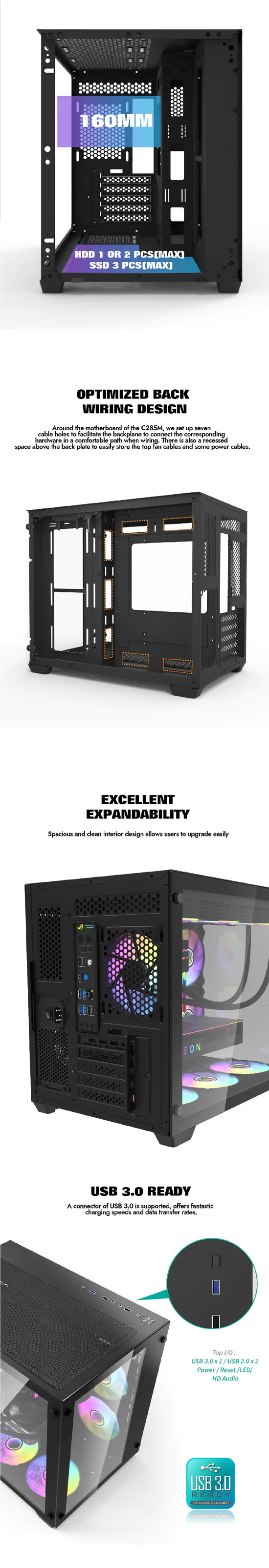 DarkFlash Computer PC CASE Mirco-ATX Tower Tempered Glass Panel without Fan (C285)