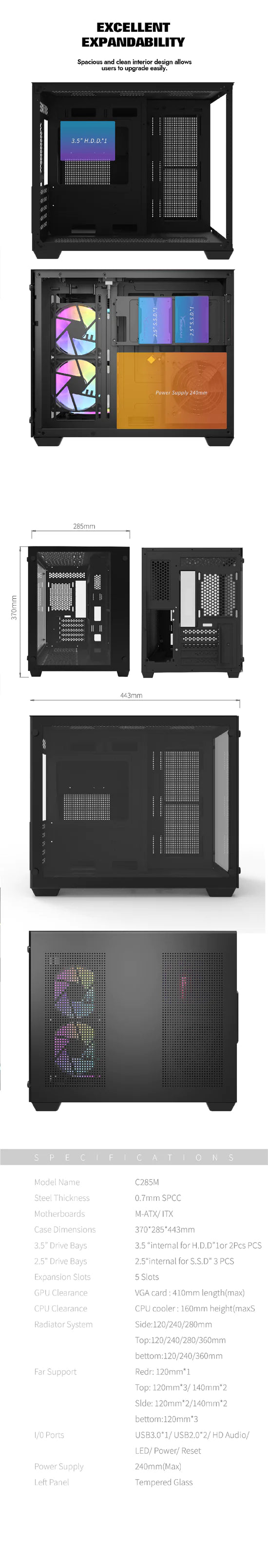 DarkFlash C285 MATX PC CASE Tempered Glass Panel Without Fan