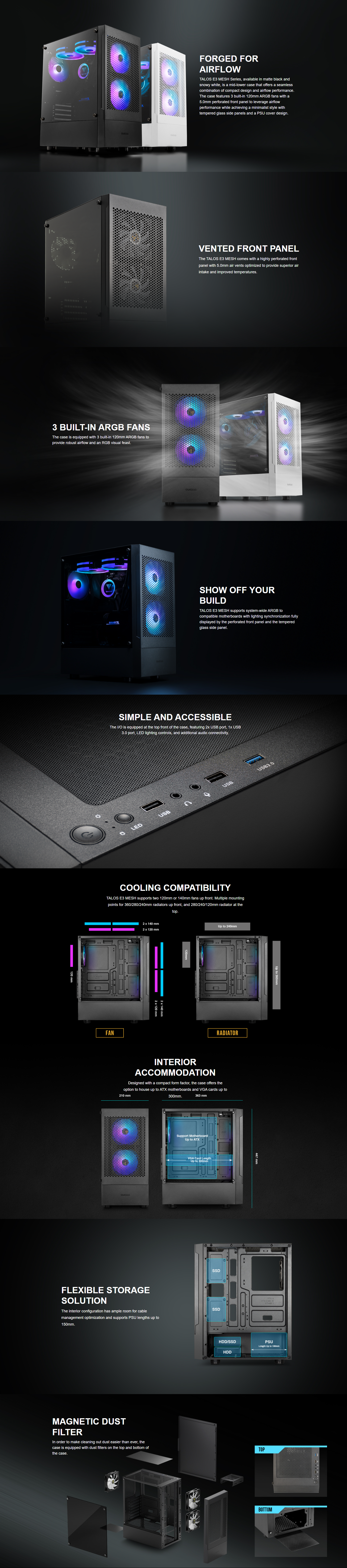 Pre-installed Fans: Front: 2 x 120mm ARGB Fans / Rear: 1 x 120mm ARGB Fan
