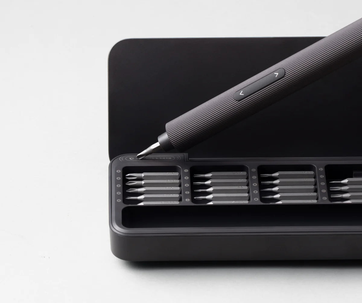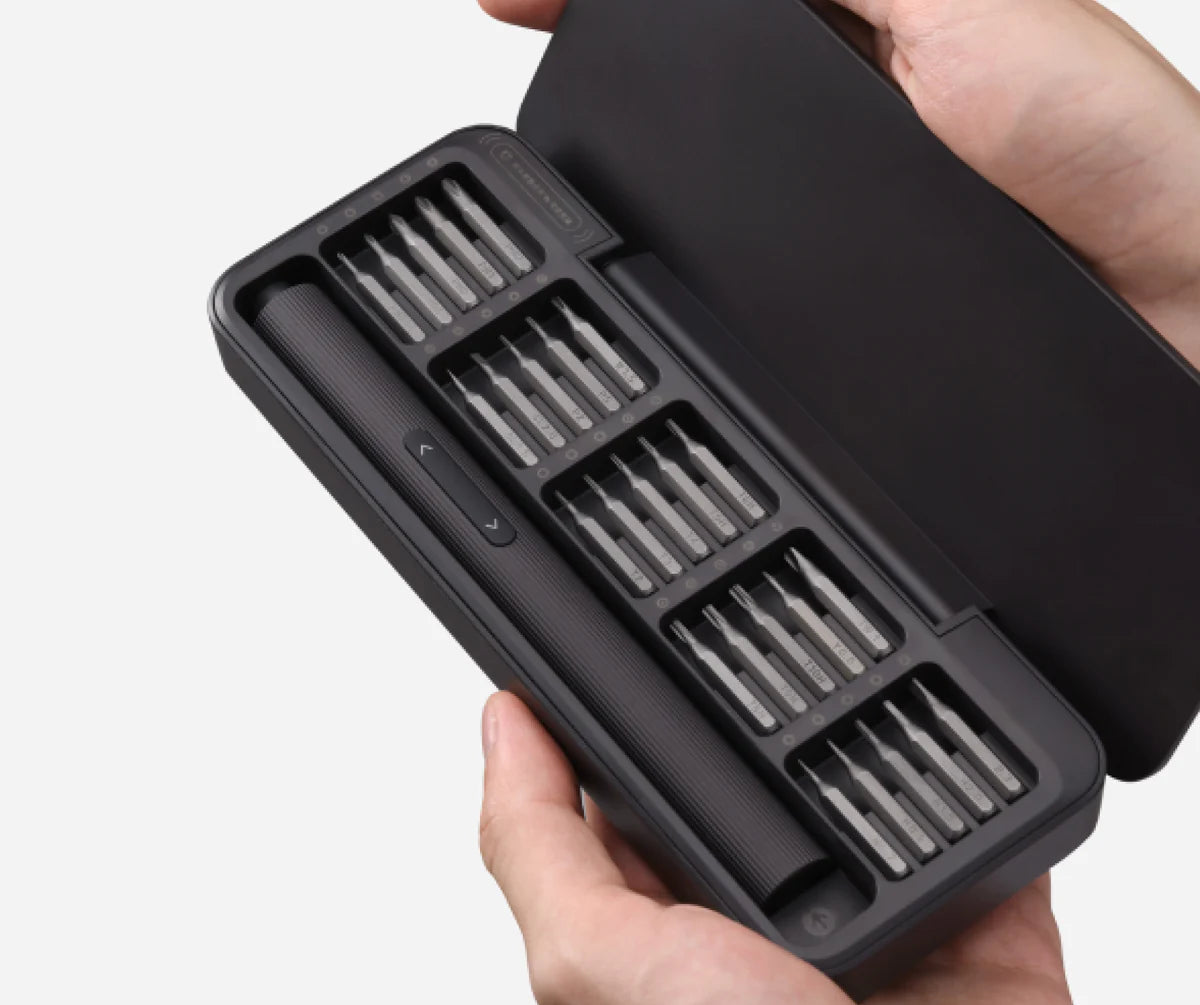60HRC S2 steel precision bits, anodized and sandblasted, with a slip-proof aluminum alloy lid for a premium feel.