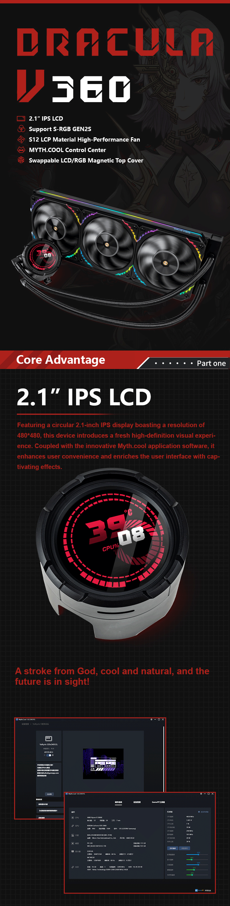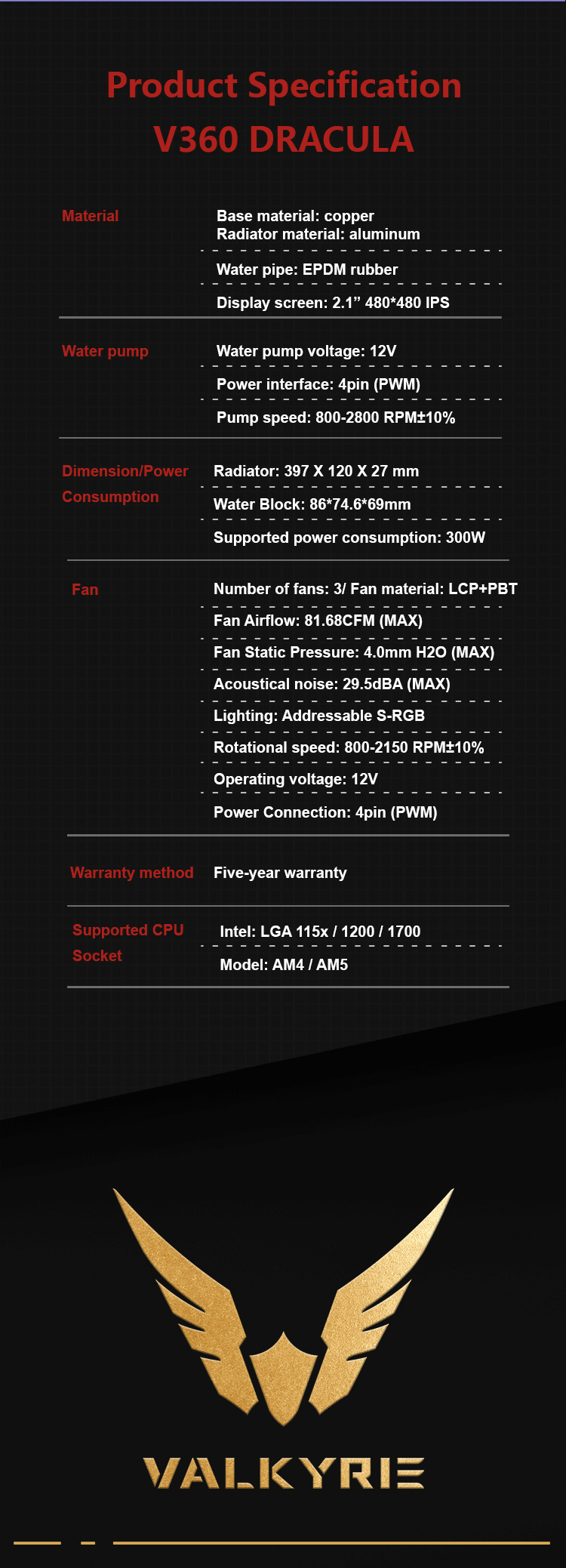 The Valkyrie V360 is an all-in-one powerhouse of liquid CPU cooling. Featuring an LCD screen, it brings sophistication to your setup with its unique look and powerful performance.
